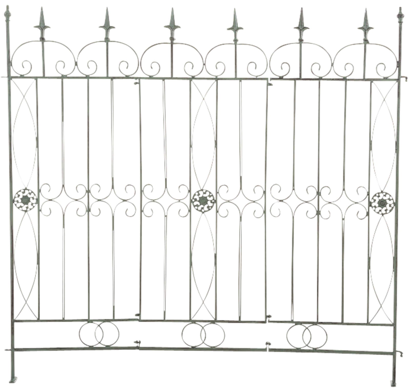 Las exclusivas verjas de jardín impresionan no solo por su diseño sino también por su elegancia. Las vallas se han realizado en estilo rústico, impresionan por su diseño clásico y con las detalladas decoraciones. Son perfectas como enrejados para el diseño de jardines y no solo están diseñadas para decorar las plantas, sino que también son un buen soporte. Cada valla del jardín consta de 3 partes, las cuales se atornillan entre sí. Por lo tanto, la vallas se pueden extender a voluntad. Esta hecho de hierro. El producto se envasa originalmente y es absolutamente nuevo.