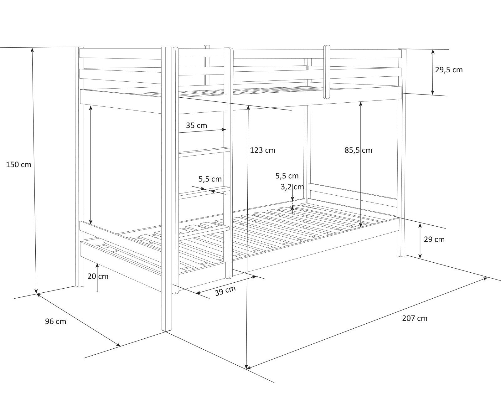 Litera infantil de madera con somier de láminas 90x200 cm blanca LIT06097