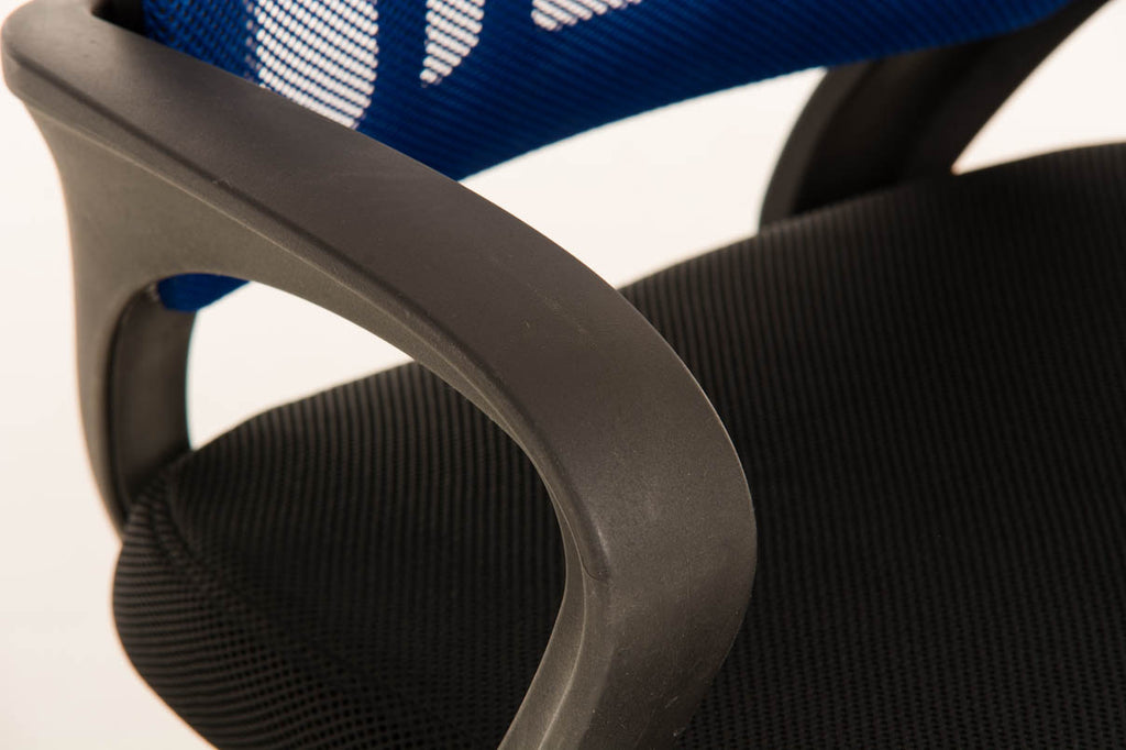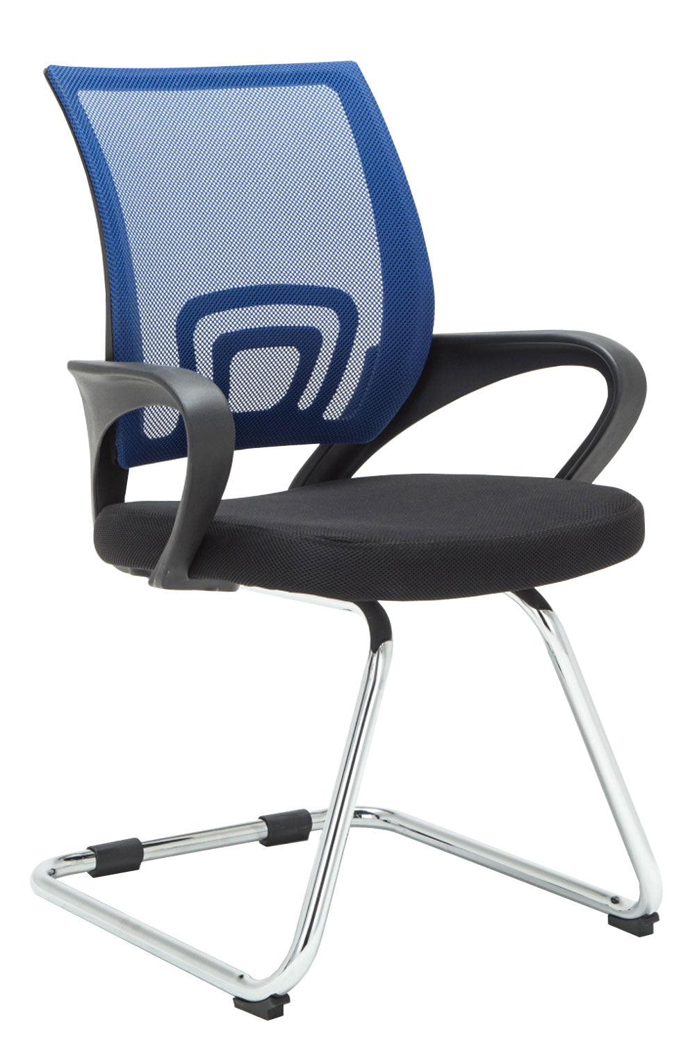 Silla de escritorio y oficina sin ruedas con reposabrazos asiento ergonómico tela azul y metal cromado M10_002409