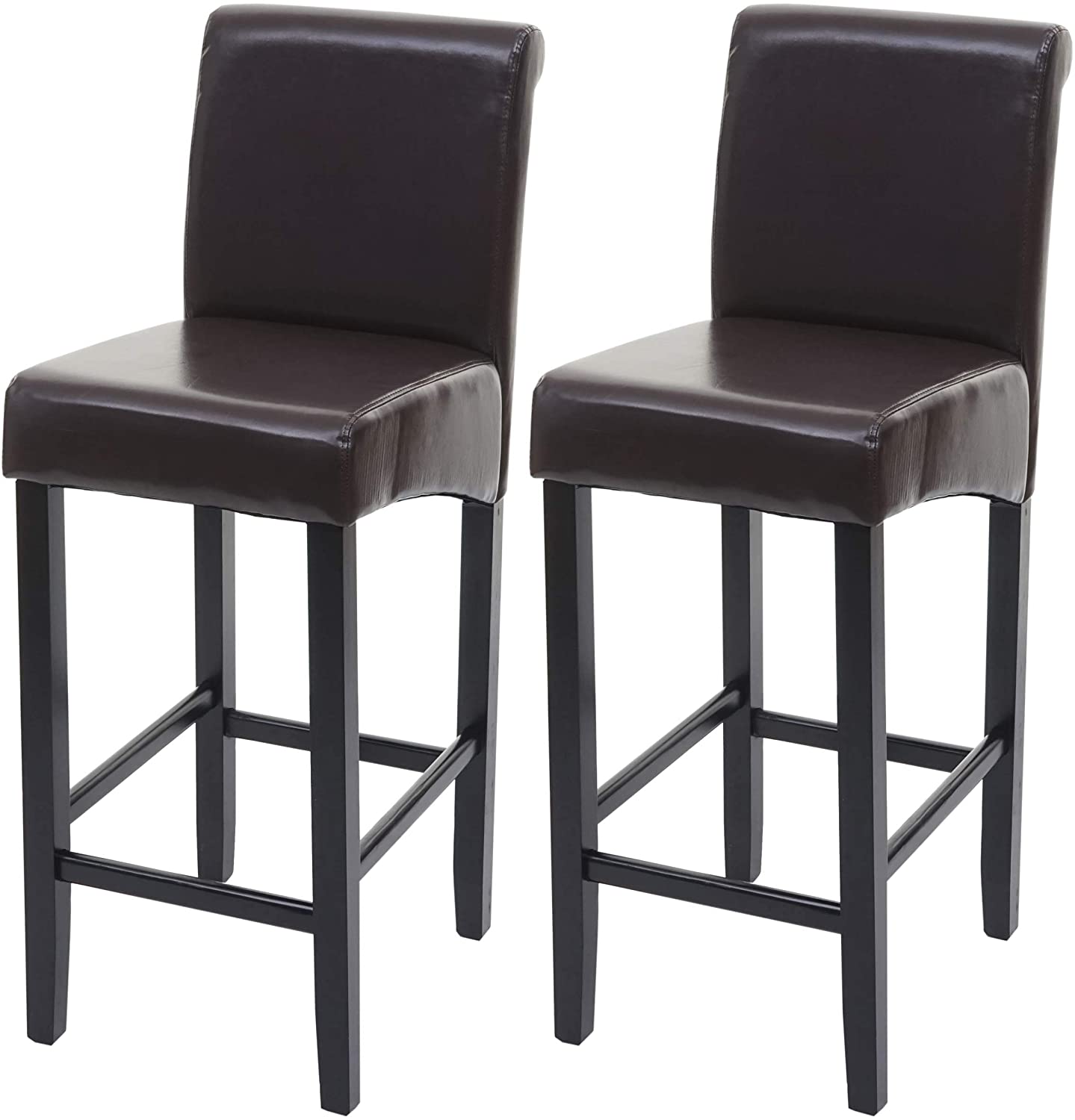 Conjunto de 2 taburetes de bar de cuero marrón con patas oscuras y reposapiés TDB04004