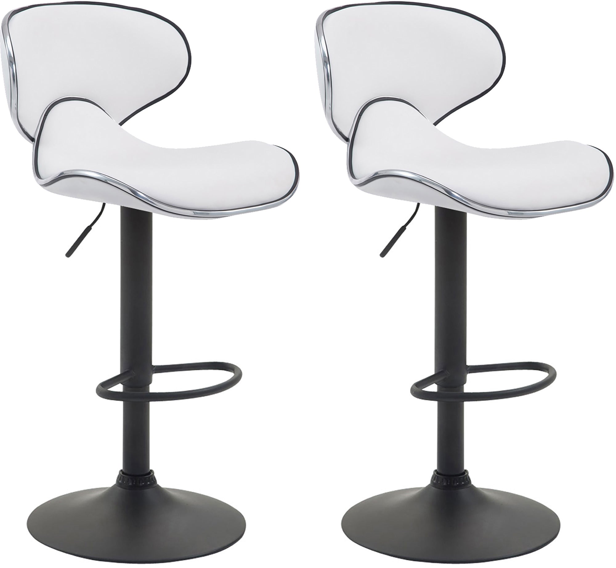 Set de 2 taburetes de bar sillas altas respaldo semi curvado polipiel blanco y metal negro M10_001525